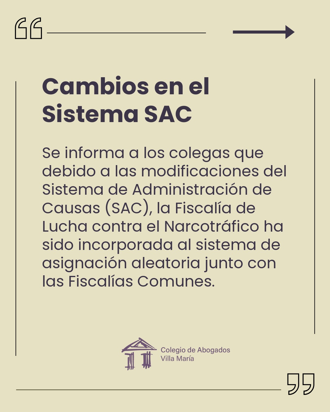 Debido a cambios en el Sistema de Administración de Causas (SAC), la Fiscalía de Narcotráfico ahora forma parte del sistema de asignación aleatoria junto con las Fiscalías Comunes.