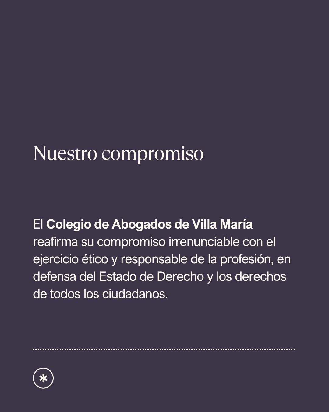 -Reafirmamos nuestro compromiso irrenunciable con el ejercicio ético у responsable de la profesión, en defensa del Estado de Derecho y los derechos de todos los ciudadanos.